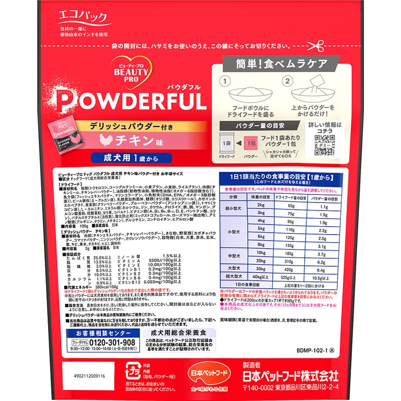 ビューティープロ ドッグ パウダフル 成犬用 チキン味パウダー付き お手頃サイズ