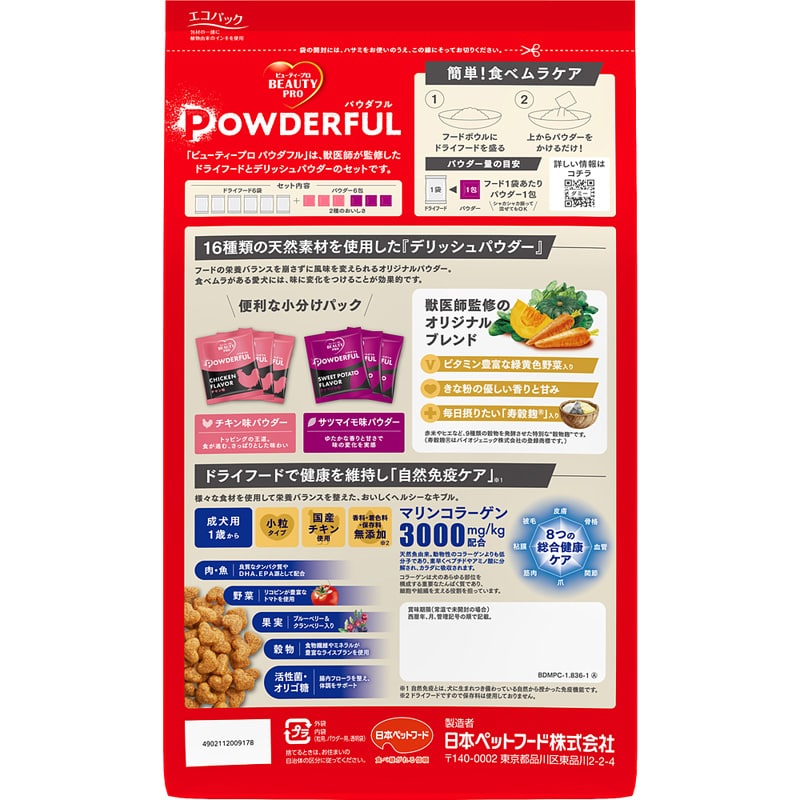 ビューティープロ ドッグ パウダフル 成犬用 チキン味・サツマイモ味パウダー付き 1.8kg+6包