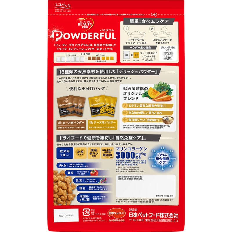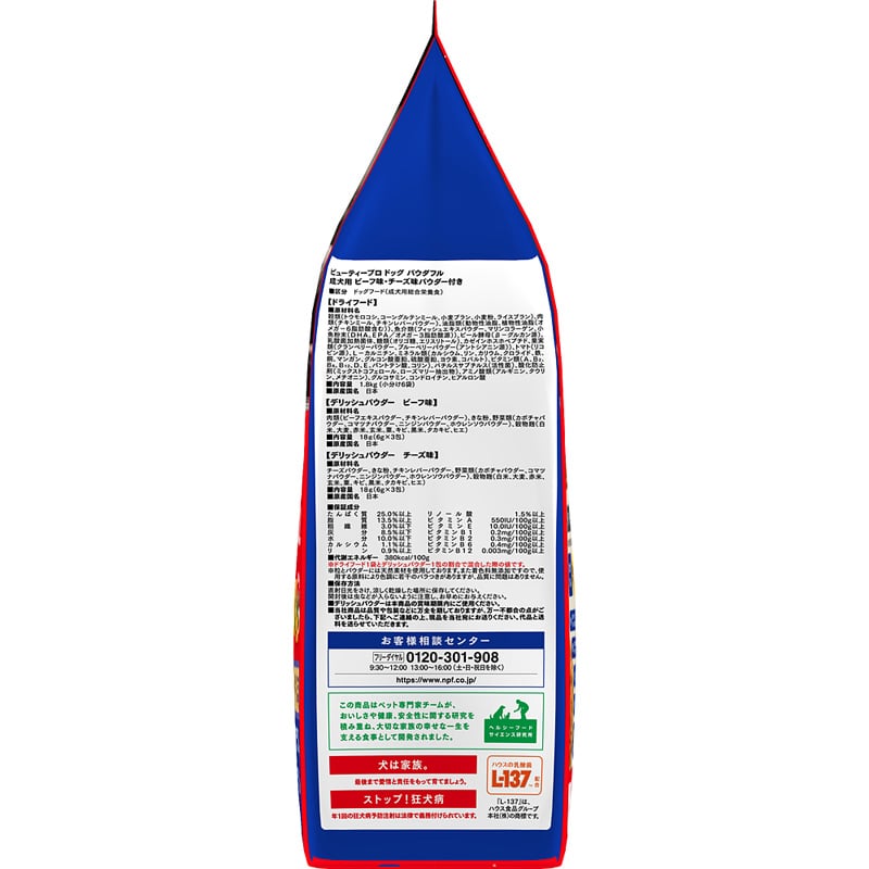 ビューティープロ ドッグ パウダフル 成犬用 ビーフ味・チーズ味パウダー付き 1.8kg+6包