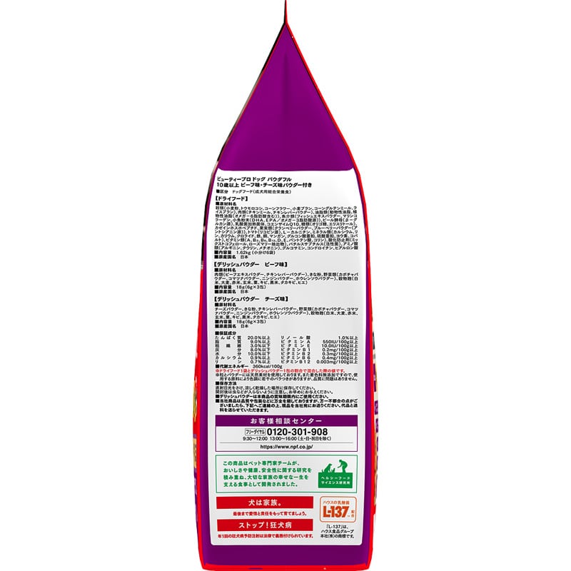 ビューティープロ ドッグ パウダフル 10歳以上 ビーフ味・チーズ味パウダー付き 1.62kg+6包