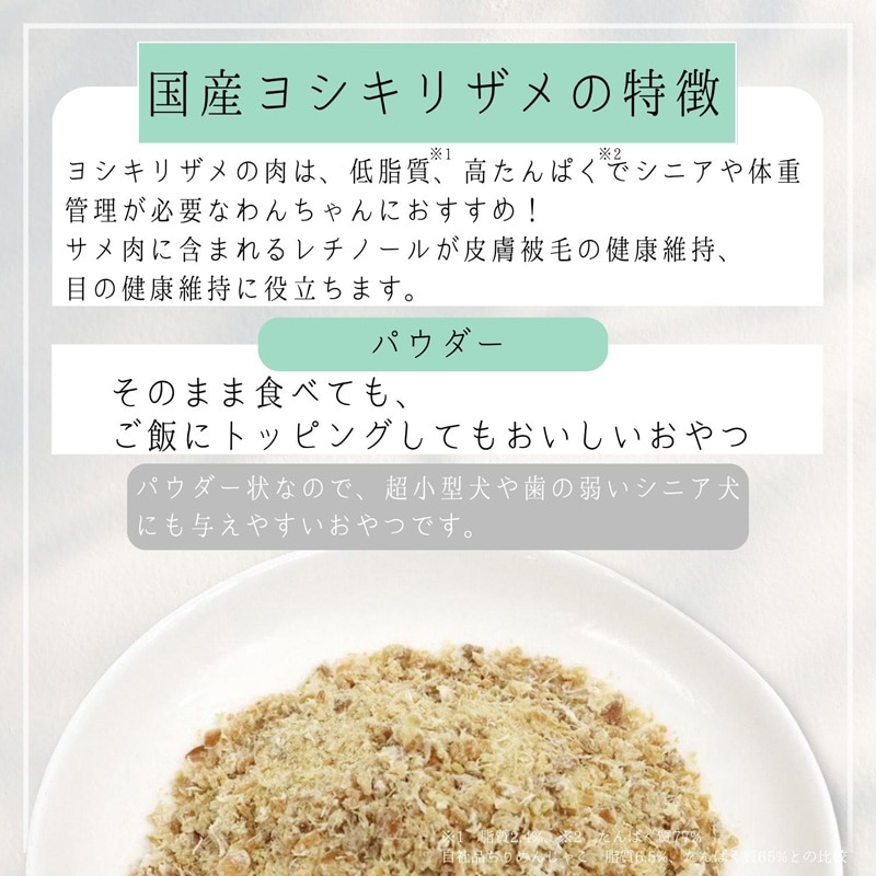 パウダー状なので、超小型犬や歯の弱いシニア犬にも与えやすいおやつです。