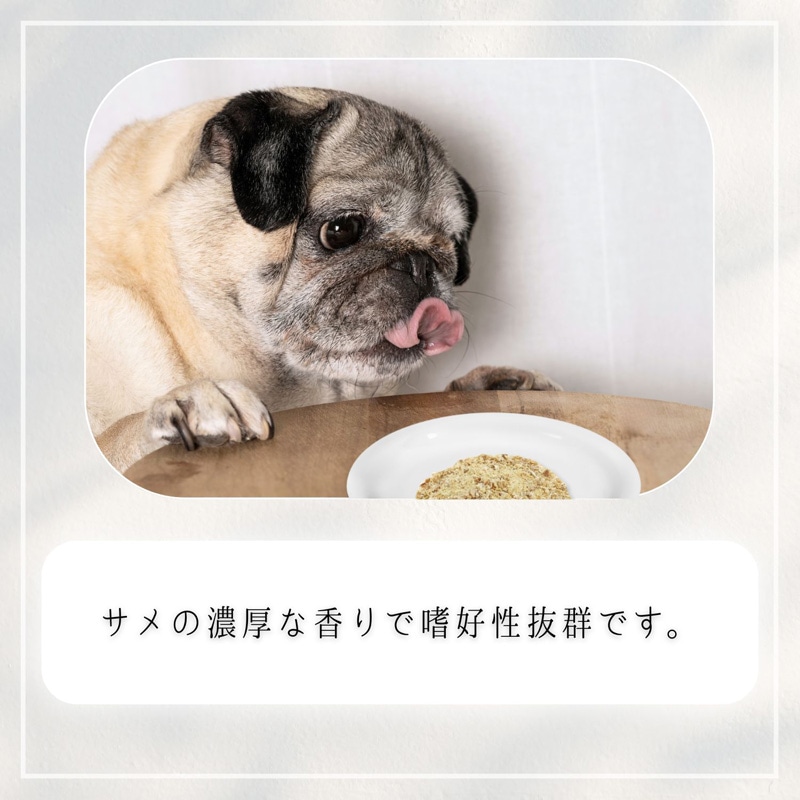 ・サメ肉に含まれるレチノールが皮膚被毛の健康維持、目の健康時に役立ちます。