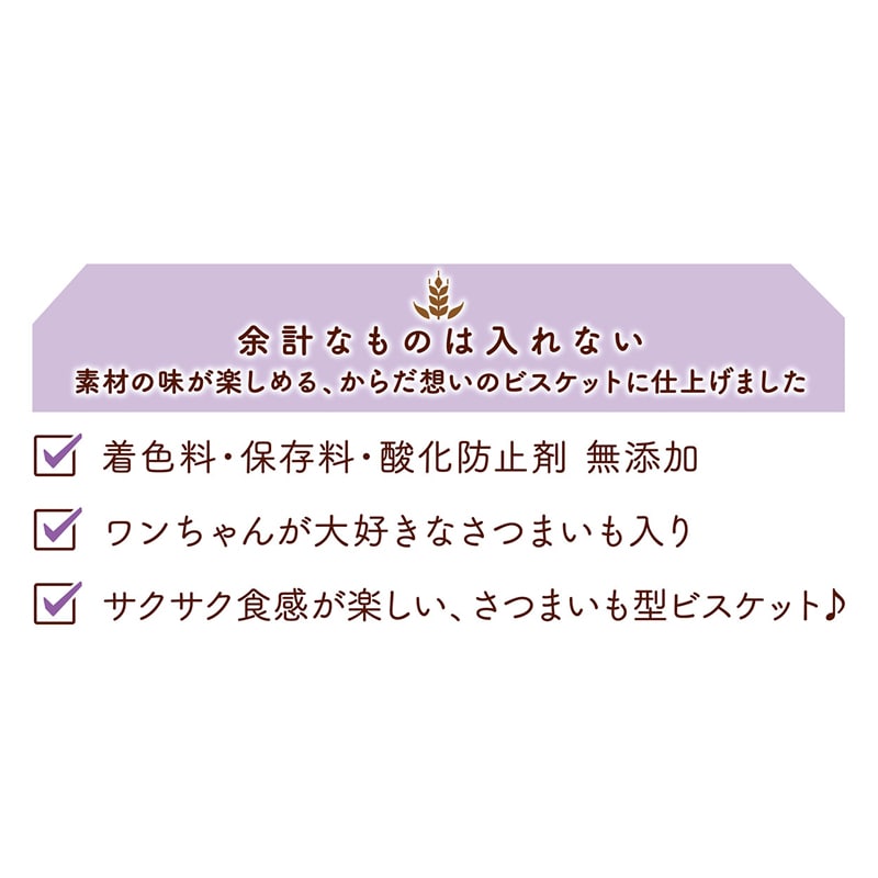 ・素材の味が楽しめる、からだ想いのさつまいも入りビスケットに仕上げました。