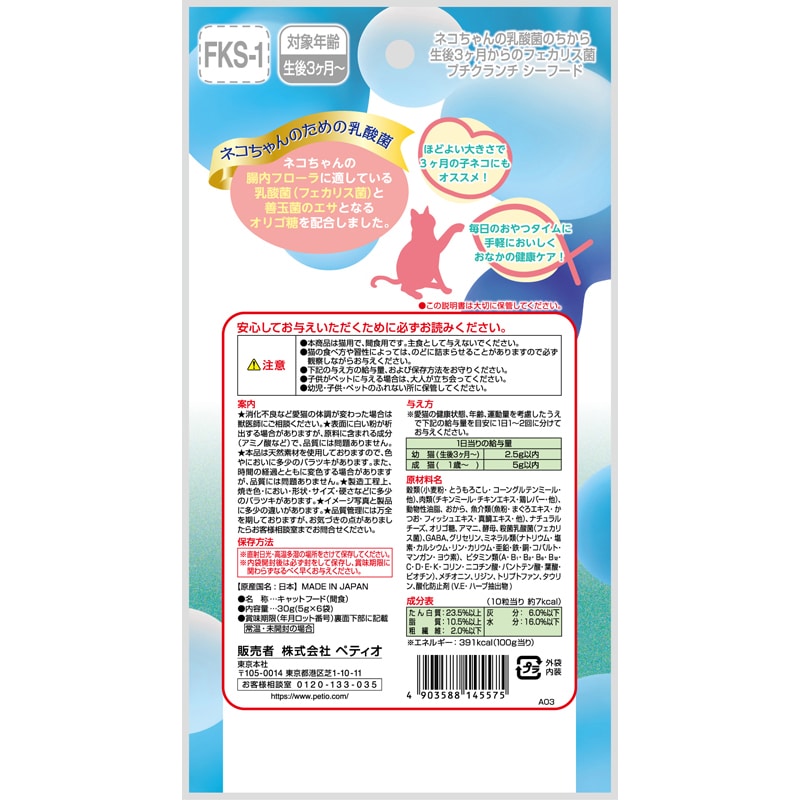 ネコちゃんの乳酸菌のちから 3ヶ月からのフェカリス菌プチクランチシーフード 30g