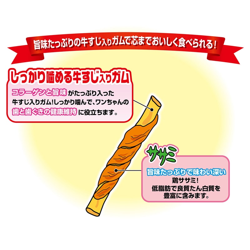 ・コラーゲンと旨味たっぷりな牛すじが入ったガムに低脂肪な鶏ササミを巻きました。