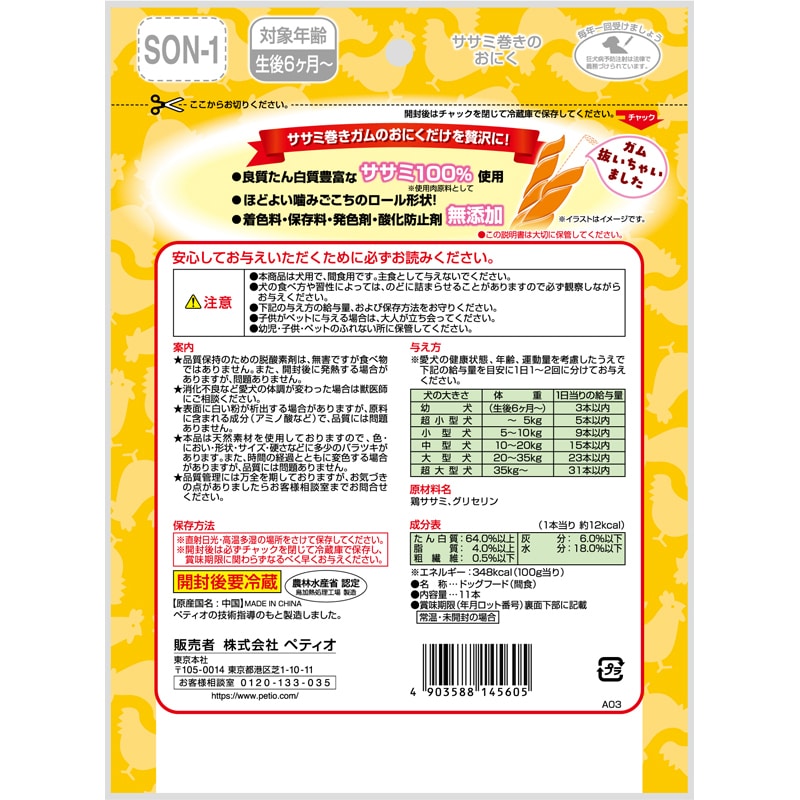【諸注意】・本商品は犬用で、間食用です。主食として与えないでください。