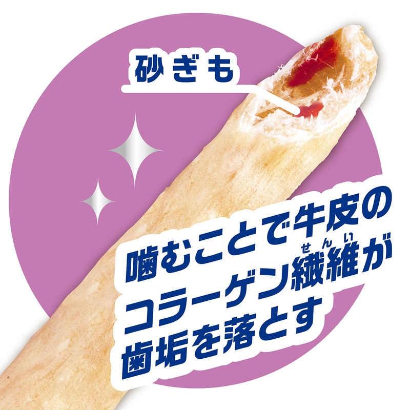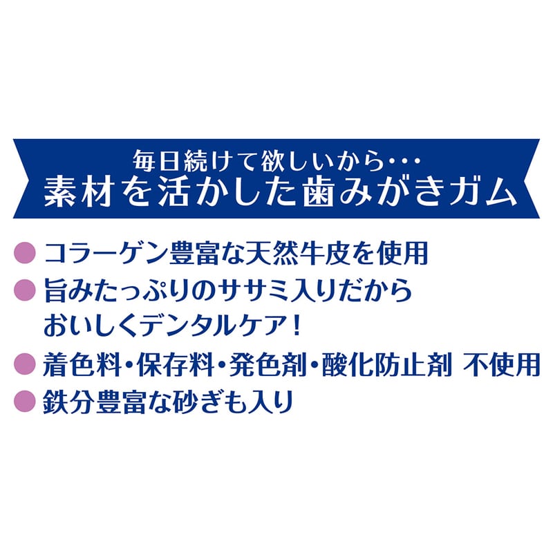 ・噛むことでコラーゲン繊維が汚れをからめて落とす!旨みたっぷりのササミ入りだからおいしくデンタルケア。