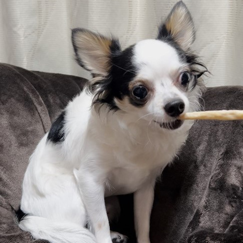 【原材料(成分)】牛皮、肉類(鶏ササミ・鶏砂ぎも)、たん白加水分解物、加工でんぷん