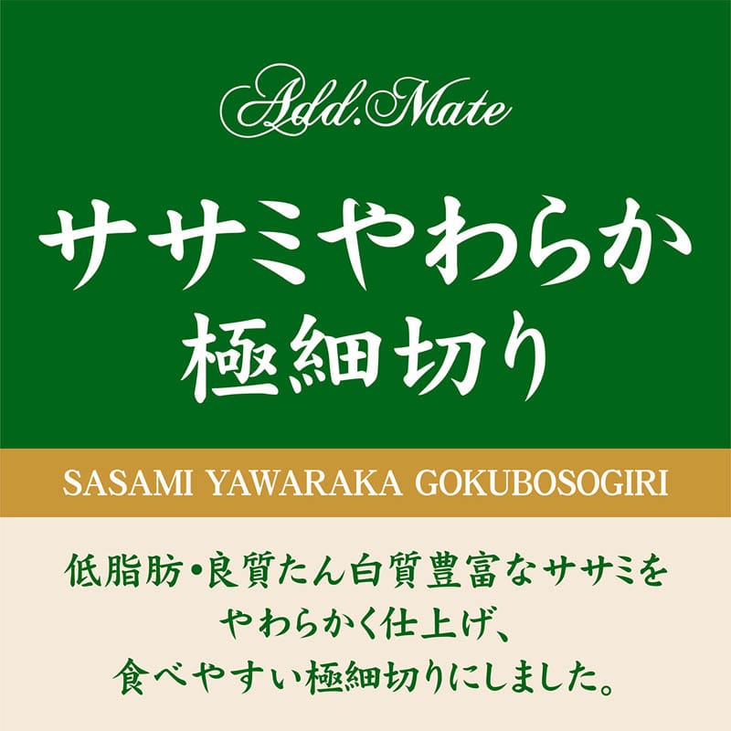 ・低脂肪、良質たん白質豊富なササミをやわらかく仕上げ、食べやすい極細切りにしました。