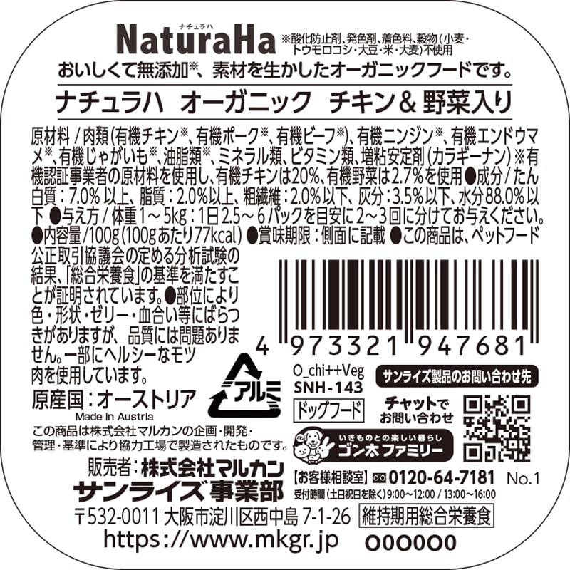 ナチュラハ オーガニック チキン&野菜入り 100g
