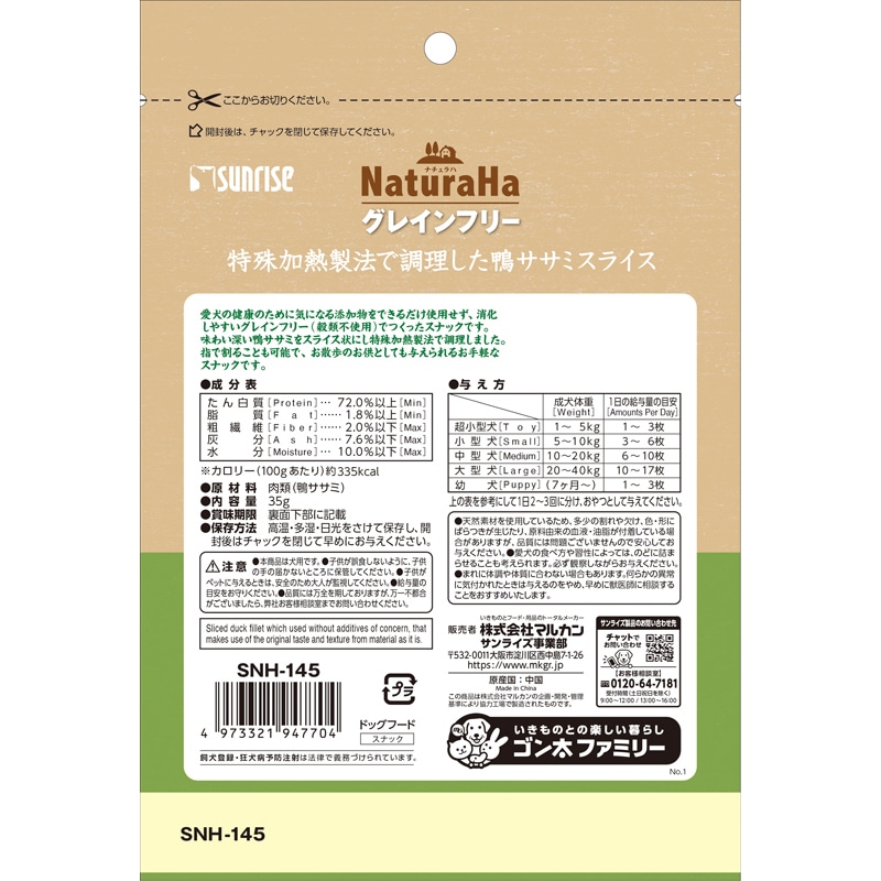 ナチュラハ グレインフリー 特殊加熱製法で調理した鴨ササミスライス 35g