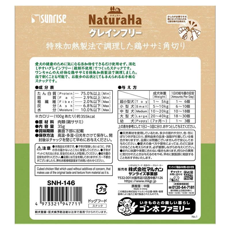 ナチュラハ グレインフリー 特殊加熱製法で調理した鶏ササミ角切り 35g