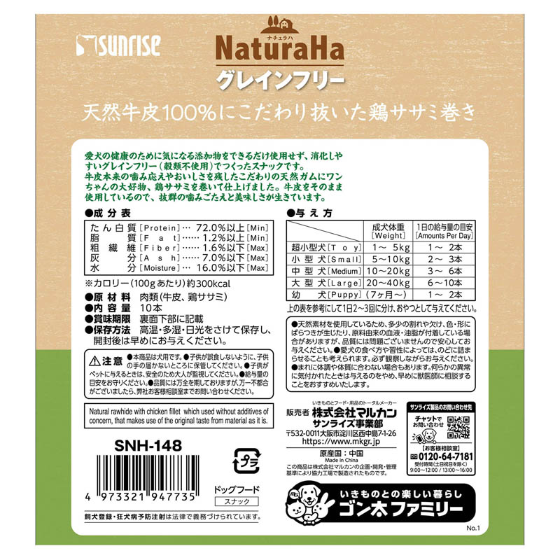 ナチュラハ グレインフリー こだわり抜いた鶏ササミ巻き 10本