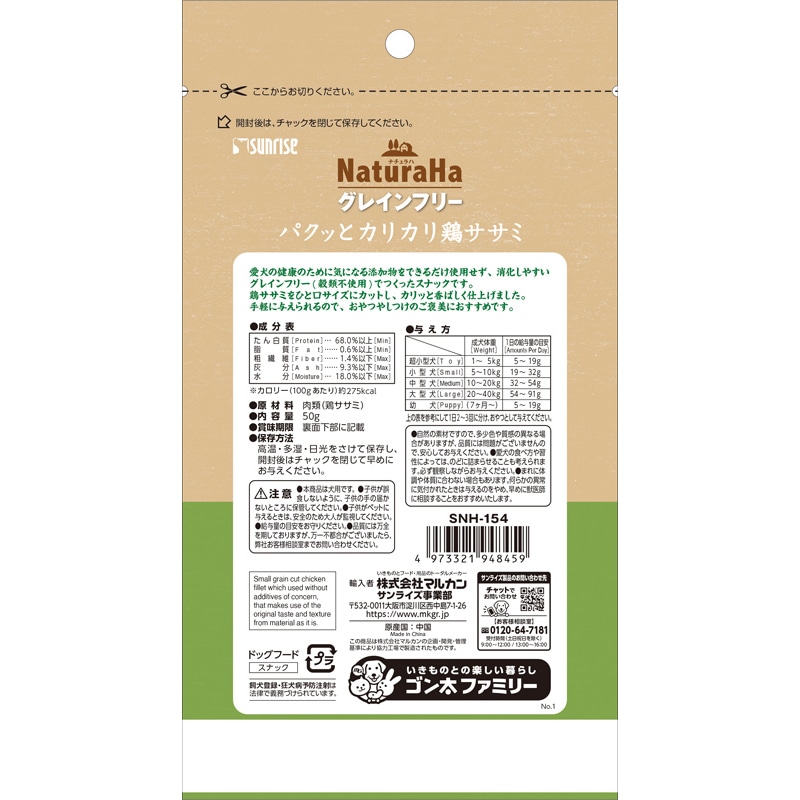 ナチュラハ グレインフリー パクッとカリカリ鶏ササミ 50g