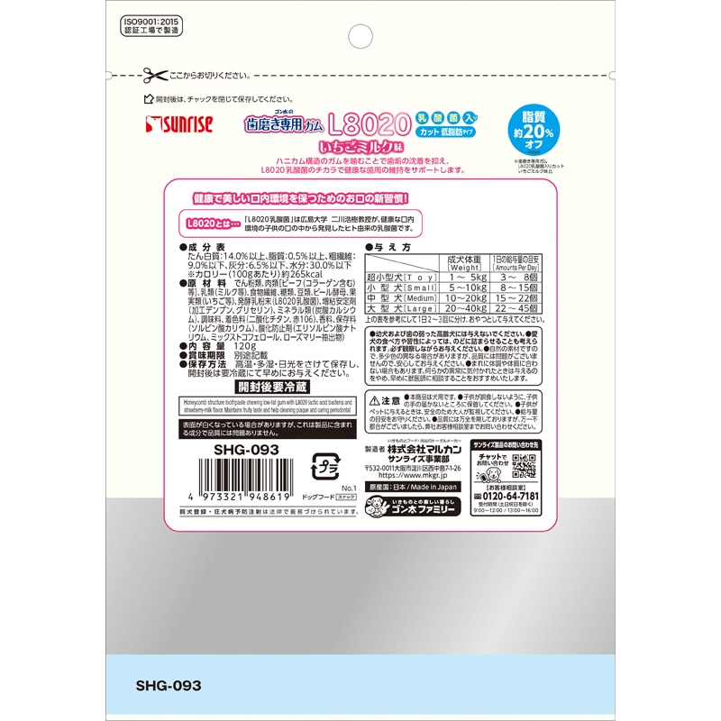 ゴン太の歯磨き専用ガム L8020乳酸菌入り いちごミルク味 カット 低脂肪タイプ 120g