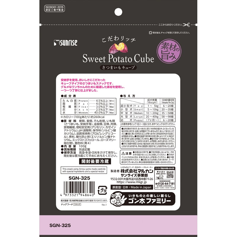 ・素材の甘みがギュッと詰まった安納芋を使用、おいしさにこだわったキューブタイプのさつまいもスナックです。