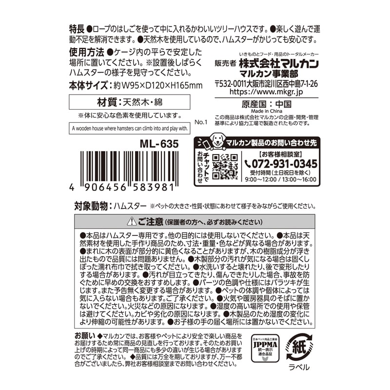 ・天然木を使用しているので、ハムスターがかじっても安心です。