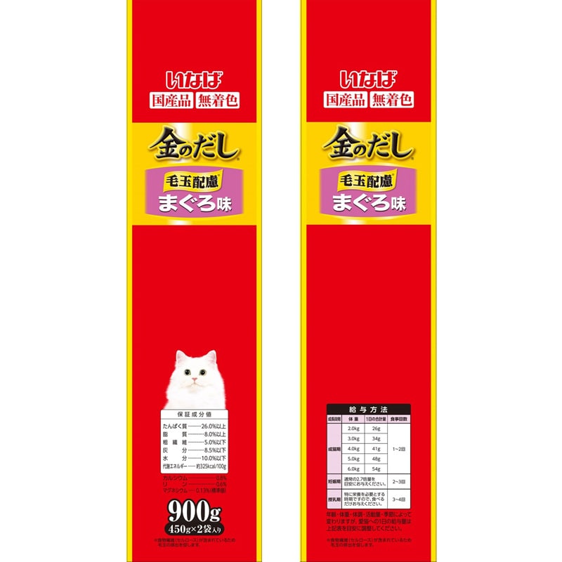 【給与方法】年齢・体重・体調・活動量・季節によって変わりますが、愛猫への1日の給与量は商品裏面表を目安に調整してください。