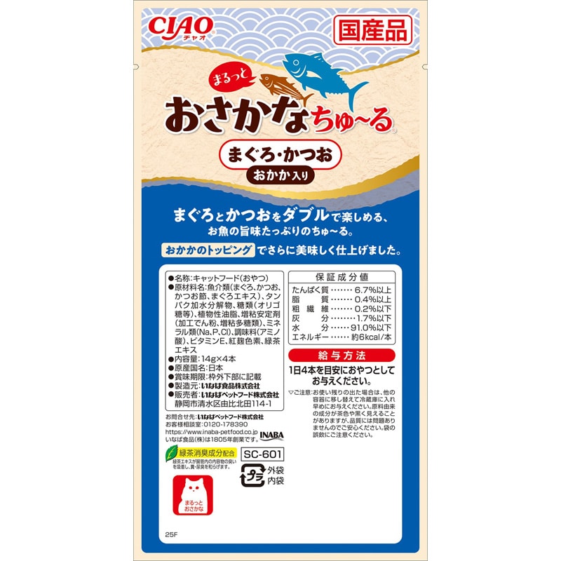 CIAO まるっとおさかなちゅ〜る まぐろ・かつお おかか入り 14g×4本