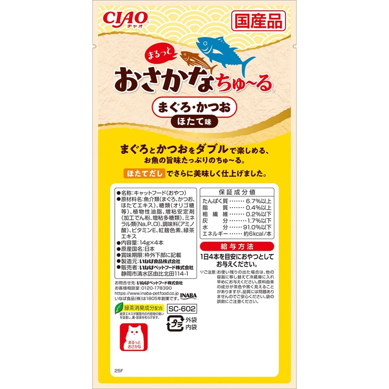 CIAO まるっとおさかなちゅ〜る まぐろ・かつお ほたて味 14g×4本