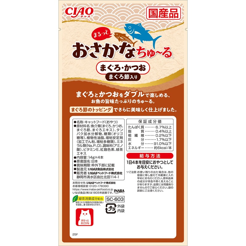 CIAO まるっとおさかなちゅ〜る まぐろ・かつお まぐろ節入り 14g×4本