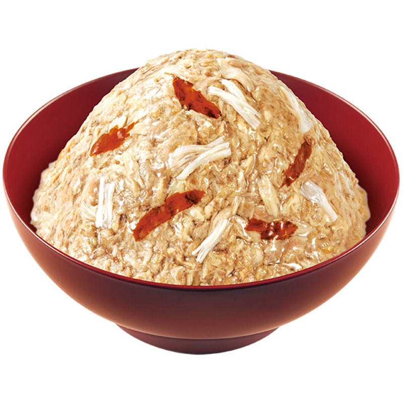 【原材料(成分)】魚介類(まぐろ、かつお、まぐろ節、かつお節エキス)、鶏肉(ささみ)、寒天、糖類(オリゴ糖等)、植物性油脂、ミネラル類(Na、P、Cl)、増粘安定剤(増粘多糖類、加工でん粉)、調味料(アミノ酸)、ビタミンE、紅麹色素、緑茶エキス