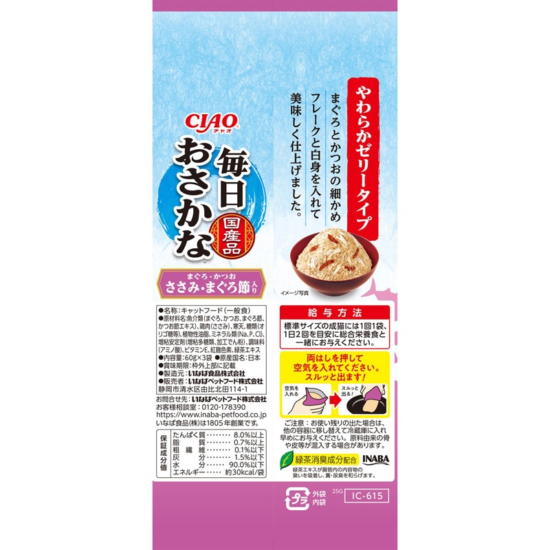 CIAO 毎日おさかな まぐろ・かつお ささみ・まぐろ節入り 60g×3袋