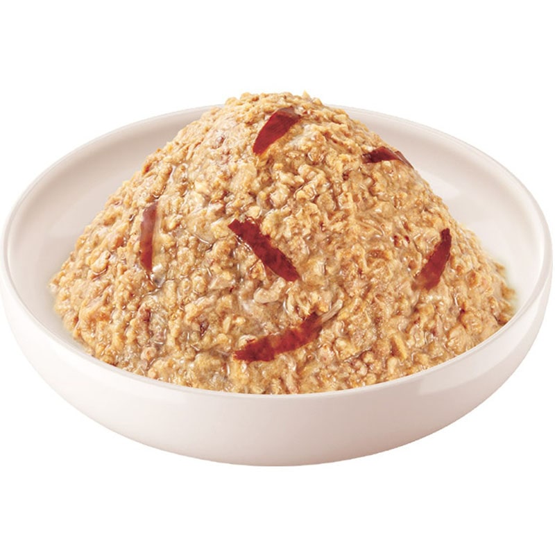 【原材料(成分)】魚介類(まぐろ、かつお、かつお節、かつお節エキス)、糖類(オリゴ糖等)、植物性油脂、増粘多糖類、ミネラル類(Na、P、Cl)、調味料(アミノ酸)、ビタミンE、紅麹色素、緑茶エキス