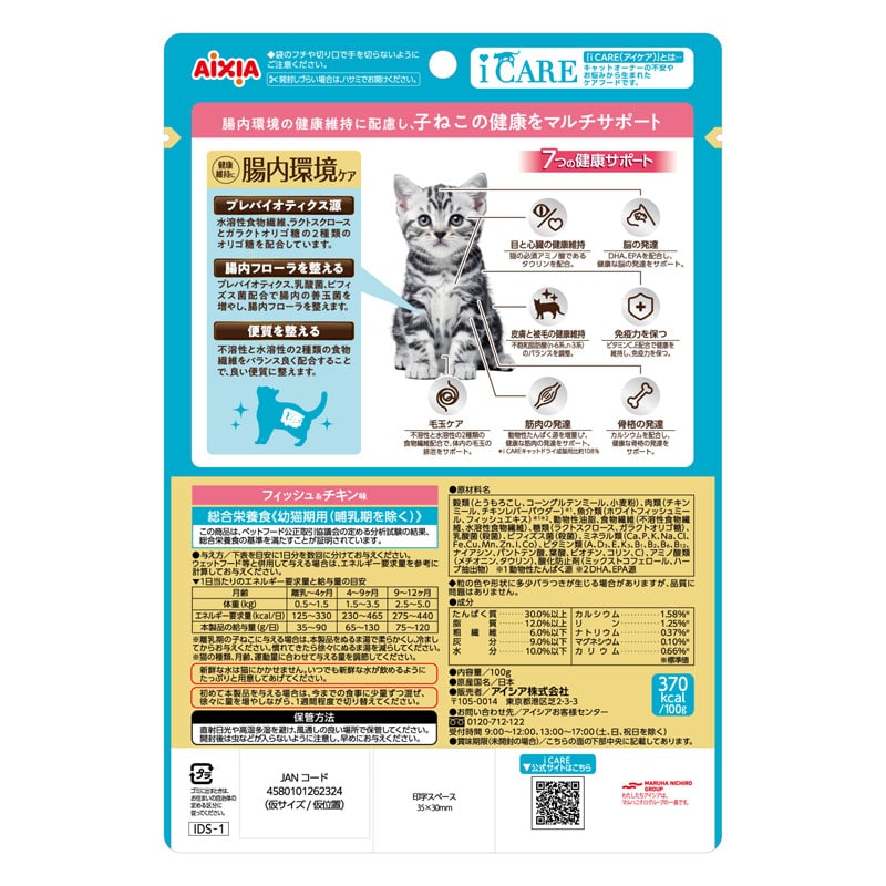 i CARE キャットドライ 12ヶ月頃までの子ねこ用 フィッシュ&チキン味 100g