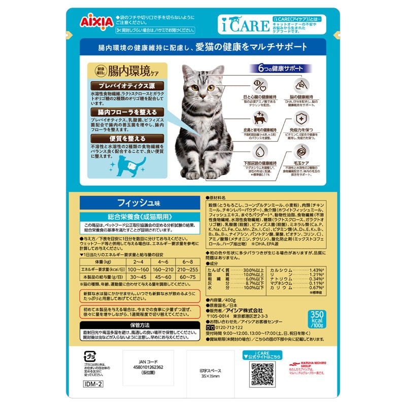 i CARE キャットドライ 成猫用 フィッシュ味 400g