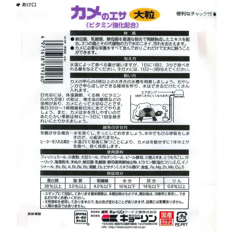 キョーリン飼育教材 カメのエサ 大粒 200g