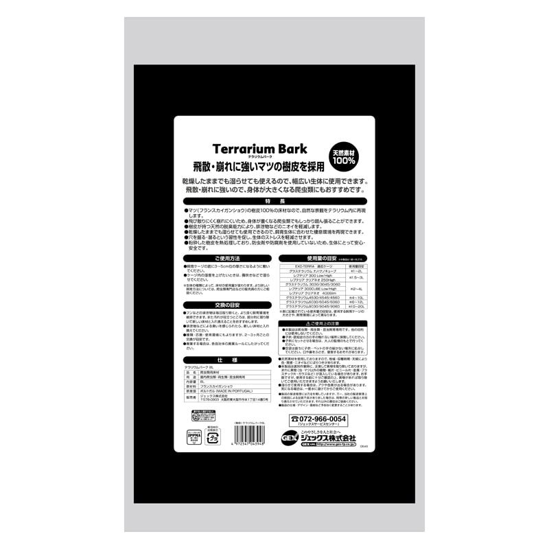 ・マツ(フランスカイガンショウ)の樹皮100%の床材なので、自然な景観をテラリウム内に再現します。