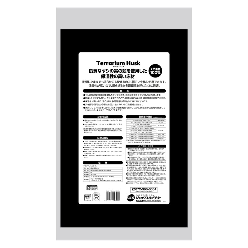 ・水洗いしてアク抜きしたヤシの実の殻を粉砕・選別しており、防虫剤や防腐剤を使用していないため、生体にとって安心・安全です。