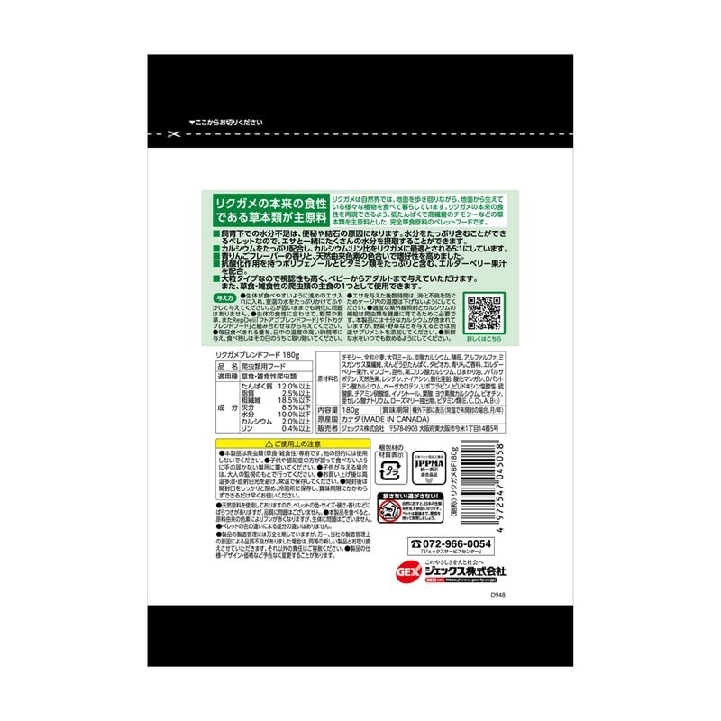 ・リクガメの本来の食性である草本類が主原料。