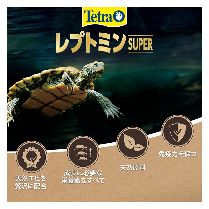 ・カメが非常に好む天然エビを贅沢に使用した、栄養豊富なプレミアムフードです。