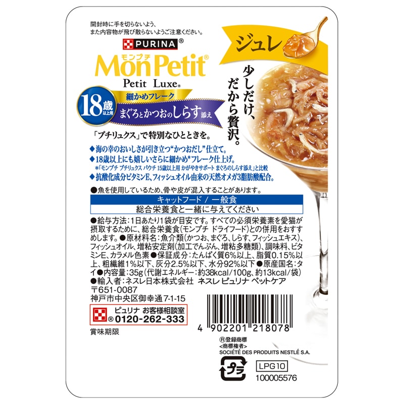 モンプチ プチリュクス ジュレ 18歳以上用 まぐろとかつおのしらす添え 35g