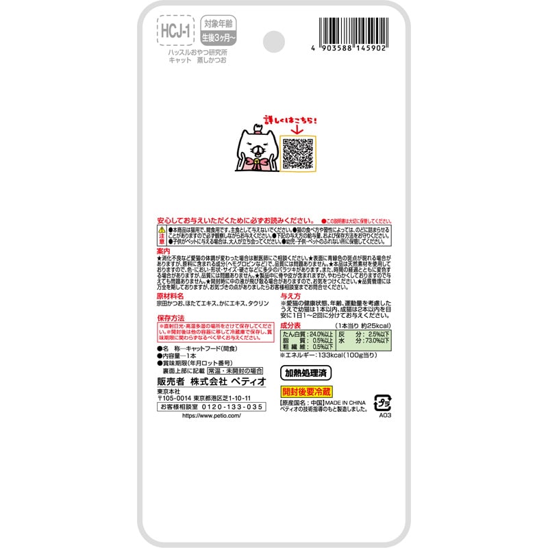 ハッスルおやつ研究所 キャット 蒸しかつお 1本入