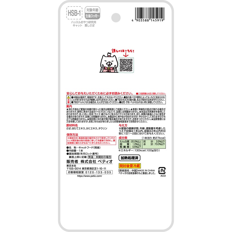 ハッスルおやつ研究所 キャット 蒸しさば 1本入