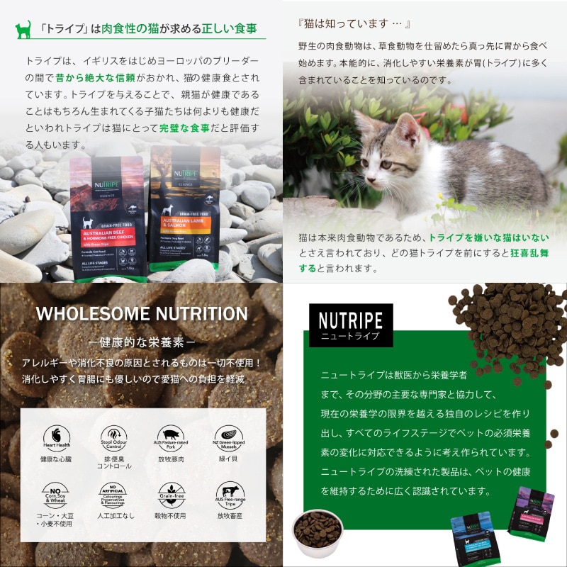 ニュートライプ グレインフリードライ キャット ビーフ&チキンwithグリーントライプ 200g