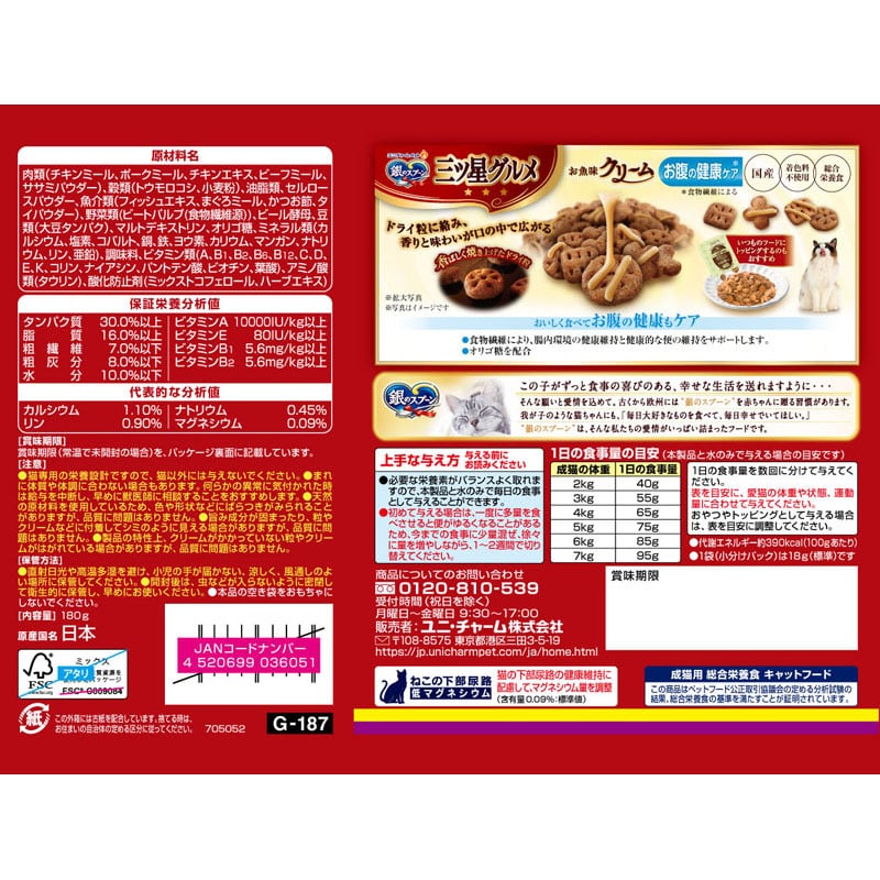 銀のスプーン 三ツ星グルメ お魚味クリーム お腹の健康ケア3種のアソート 180g