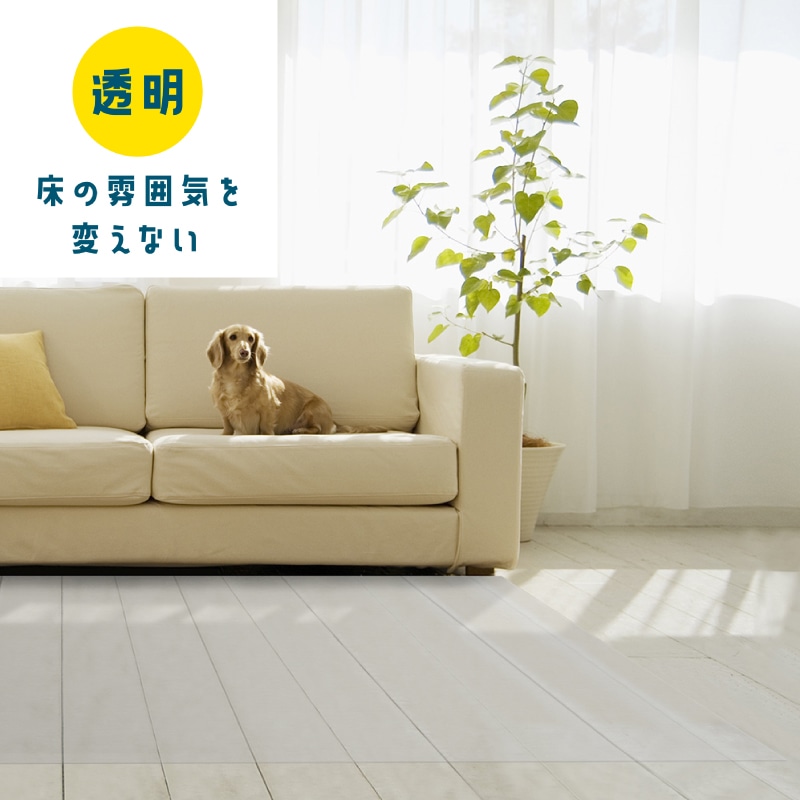ペットに最適、表面防滑性機能付で滑りにくくペットに安全、透明柄で床の柄を生かせる、防水性の高い、臭いも残りにくいペットマット