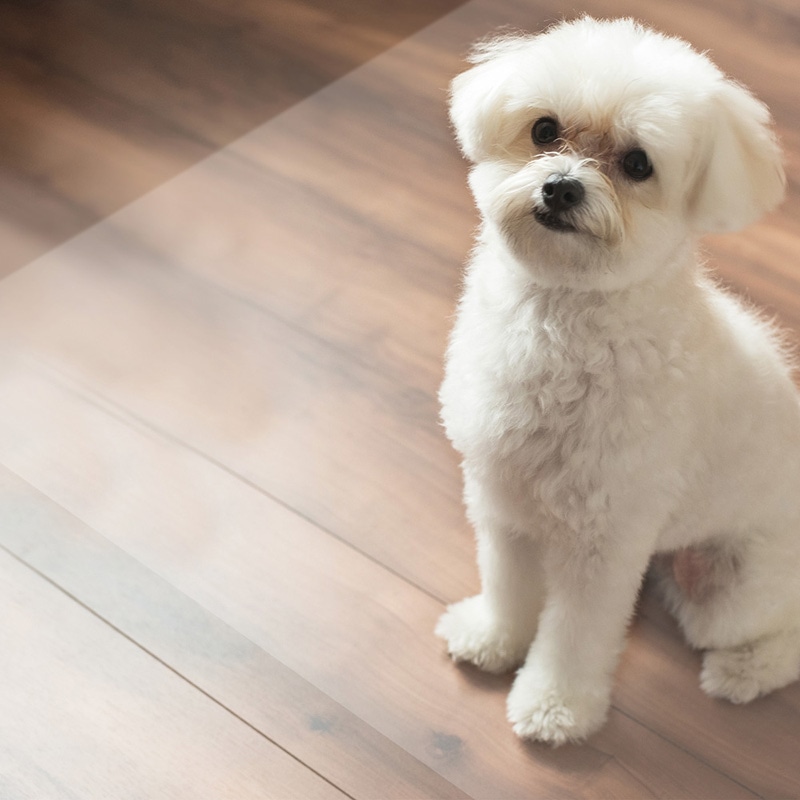 ペットに最適、表面防滑性機能付で滑りにくくペットに安全、透明柄で床の柄を生かせる、防水性の高い、臭いも残りにくいペットマット