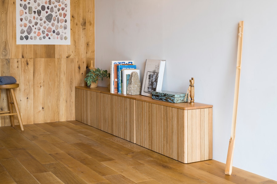 ウッドには、主張しすぎない縦スリッドのラインを入れ、正面の角は丸みをもたせ柔らかな印象に仕上げました。