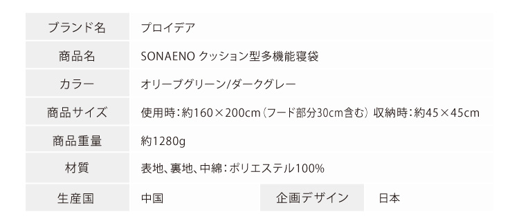 SONAENO クッション型多機能寝袋 オリーブグリーン