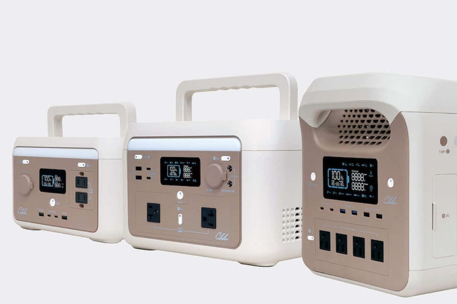 301C/601Cのハンドルは折りたためるので棚にもスッキリおさまります。1501Cは本体と一体型で、安定して持ち運びできます。
