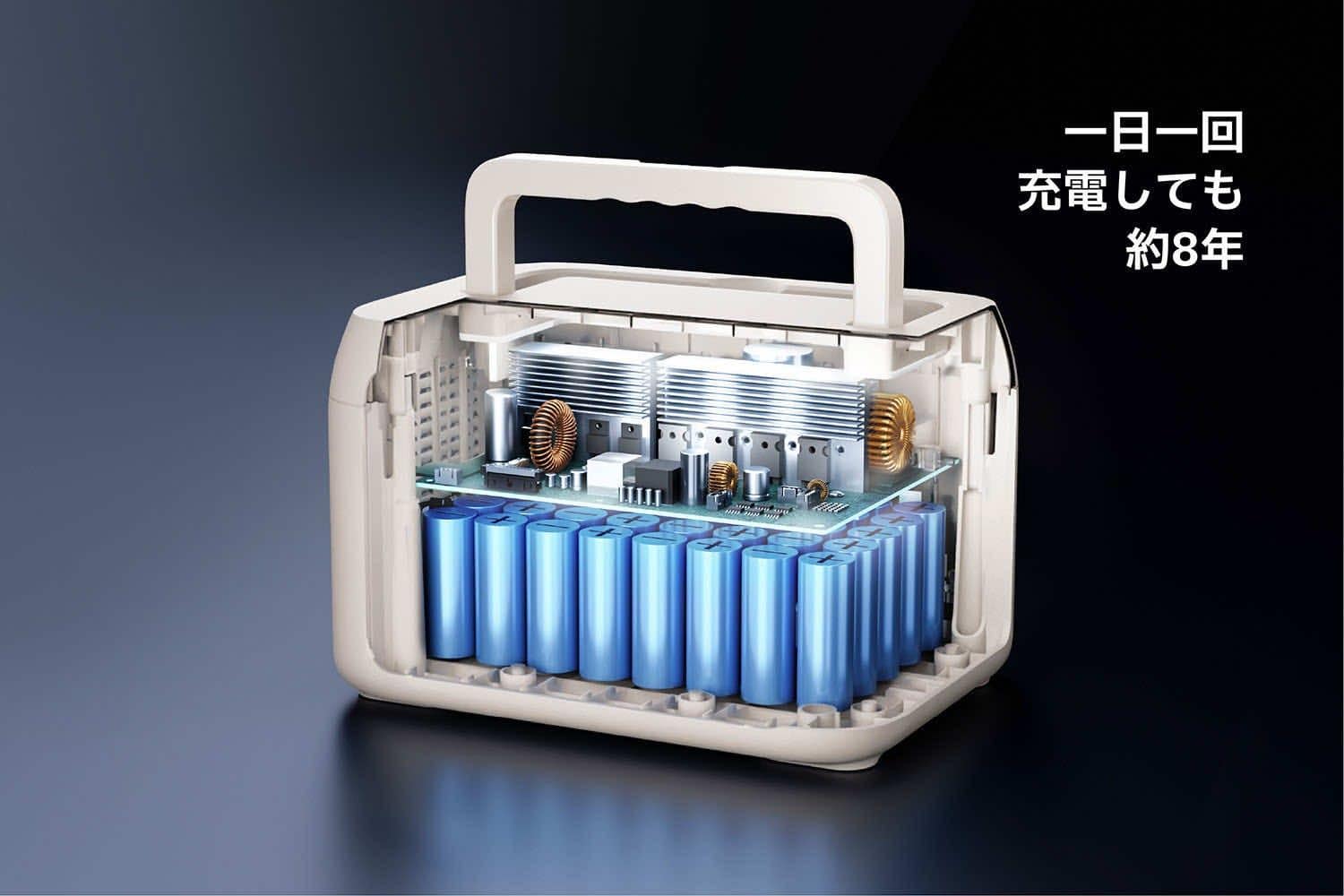リン酸鉄系バッテリーは高いサイクル寿命を持っており、充放電サイクル回数が多い状況でも安定した性能を発揮します。従来のリチウムイオン電池と比較して約6倍の長寿命を実現しました。