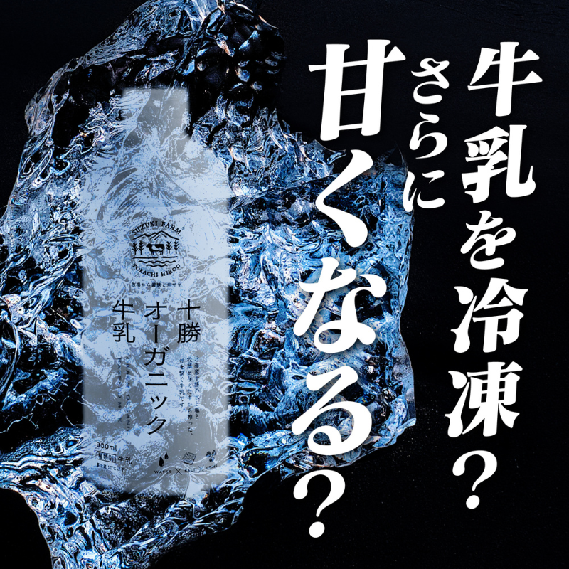 冷凍十勝オーガニック牛乳は、急速液体冷凍機「凍眠」で凍らせた育てる牛乳です。