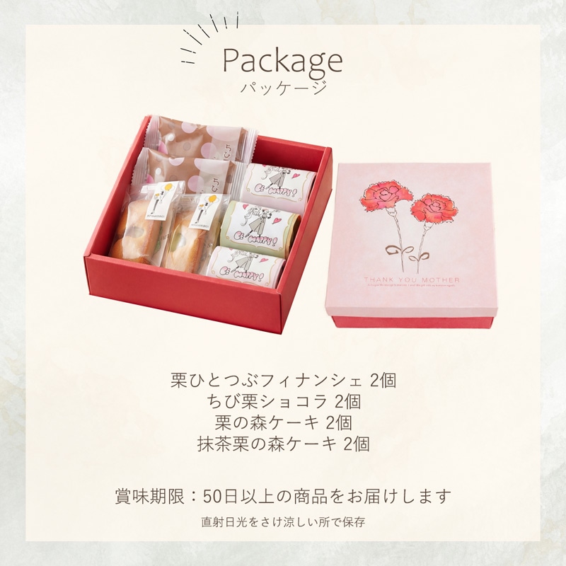 人気の焼き菓子を4種7個母の日専用BOXに入れてお届け