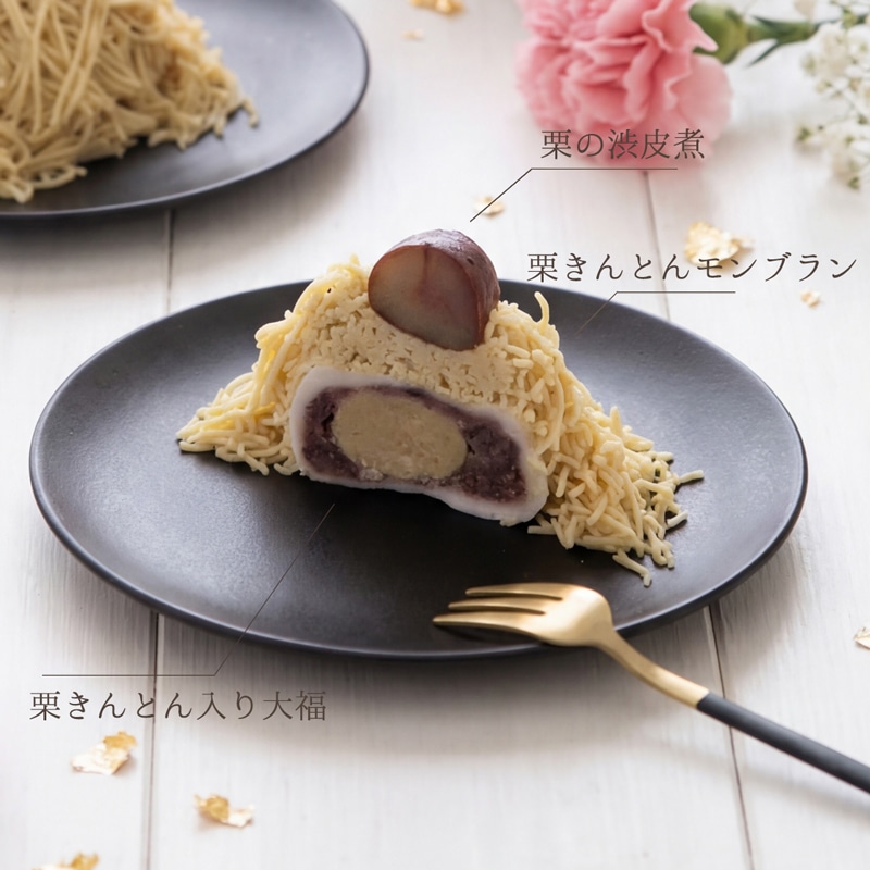 栗きんとん入り大福の上にたっぷりのモンブラン