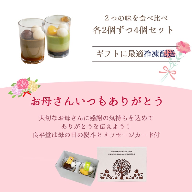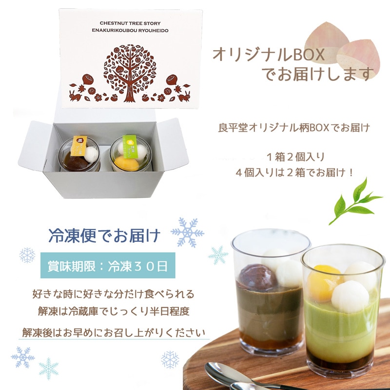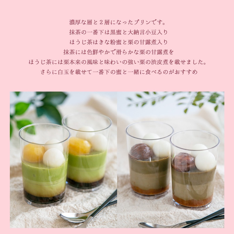 和菓子屋の作る和風プリン、抹茶とほうじ茶のプリンのセットです。